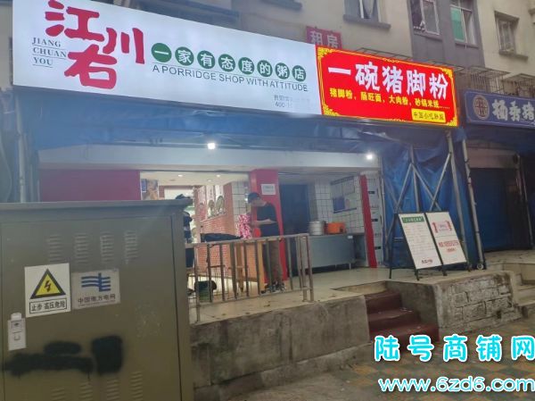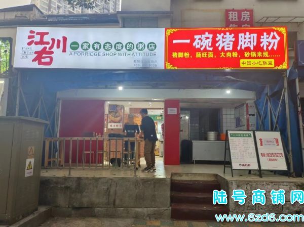 店铺现在目前经营品牌粥店,已经营一年多,生意稳定,客流量大,面积110平,门头显眼,租金7000/每月,经营压力不大,此店非常适合做夫妻店,可带品牌技术一起转让,也可空转,转让费面议,因老板几个店,管理不过来,故此转让,有诚意可来店实地考察了解