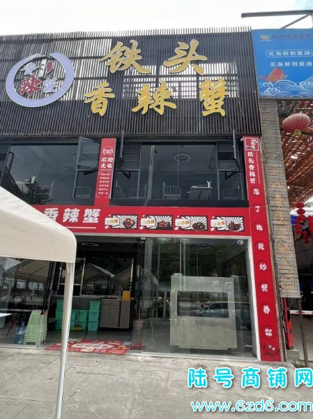 店铺在市场出口处,停车方便, 目前主要是经营铁头香辣蟹,海鲜私房菜一应俱全属于加盟店,可带品牌一起转。