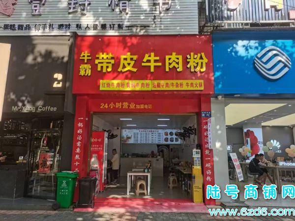 属于临街商业门面,门头宽大位置显眼,来往人流量大,门口就是公交车站,周边成熟的住宅小区,入住率高,楼上足疗店多,有稳定的客源,本店现经营的牛肉粉店,可以带技术一起转让, 具体详情来电咨询,接手即可经营
