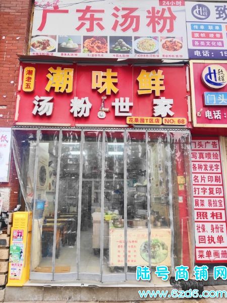 门面转让 花果园T1区1栋<广东潮味鲜,汤粉世家>门面转让56平米,门店开了8年,生意一直可以,交通方便,位置不错,目前两小孩上学没人管理,需转让,面积有56平,房租是5500一个月,还有1个月房租,按季度交,押金还有1万,整转,全包技术,做其它也很好,<转让费及房租,押金一共8万>,马上转,马上经营。定位可搜<广东潮味鲜汤粉世家>